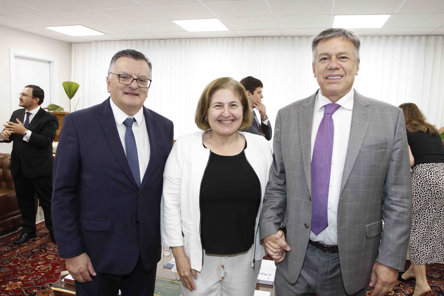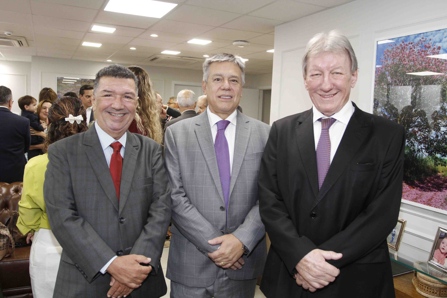Celso Florence, com o presidente do TJMS, Dorival Renato Pavan, e o