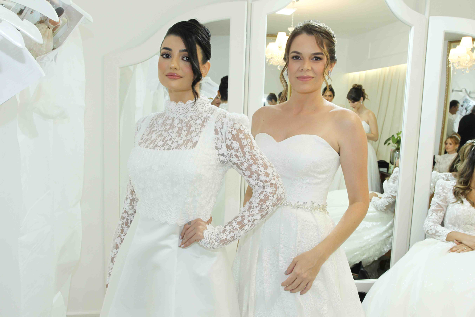 vestidos de noiva por ela desenvolvidos no próprio ateliê e os que