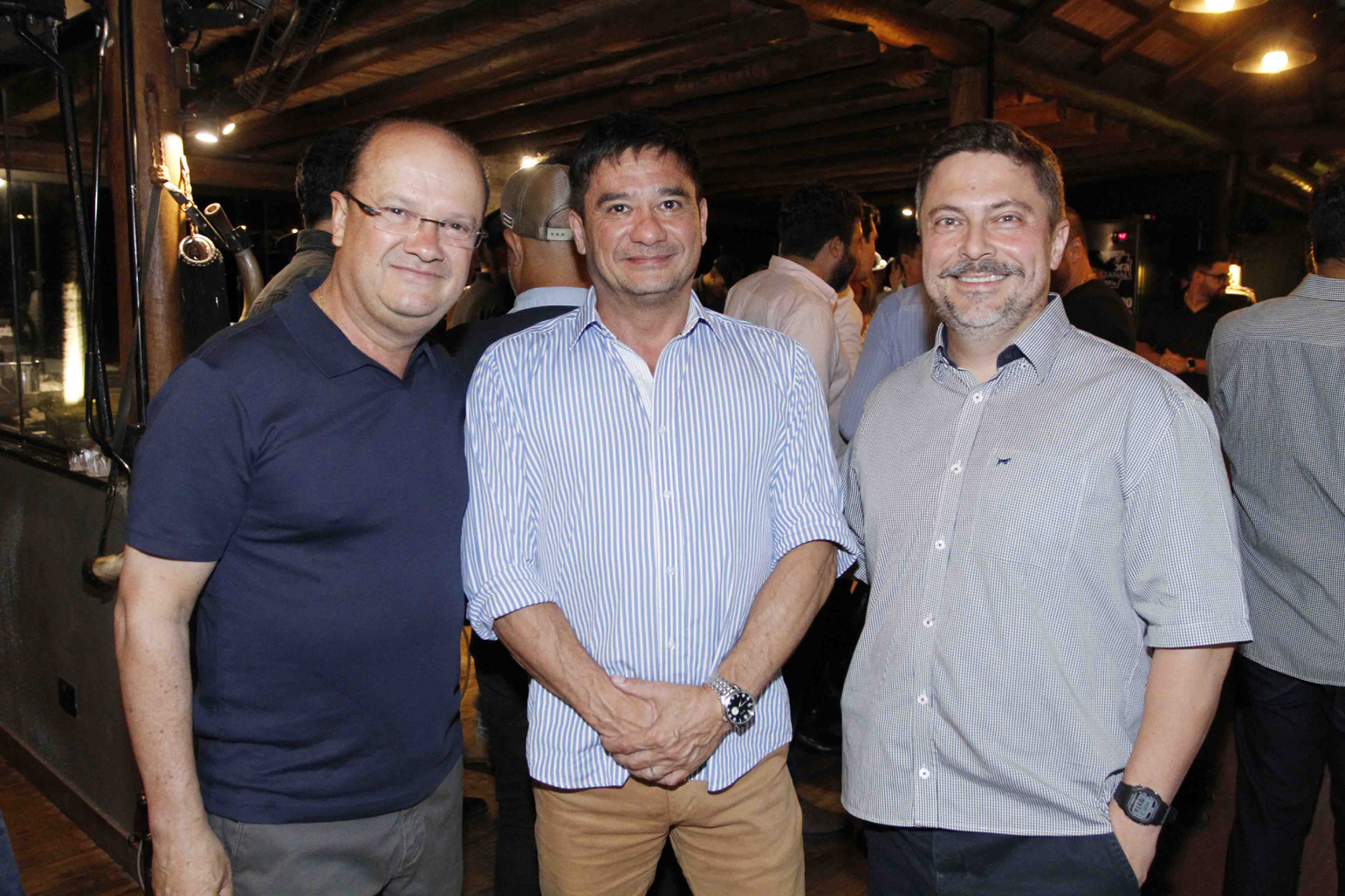 Filho, o governador Eduardo Riedel (PP) e o empresário Robson Gatti