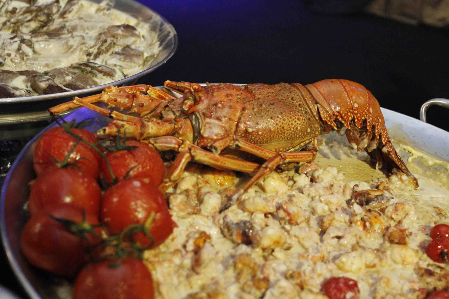 No jantar, lagosta e camarões davam o