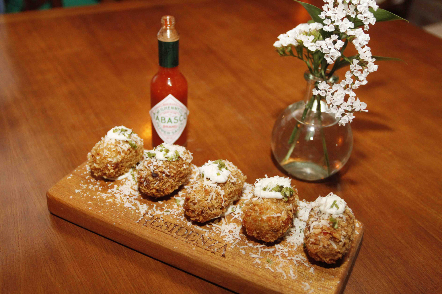 rústico, almôndegas recheadas com muçarela de búfala e finalizada