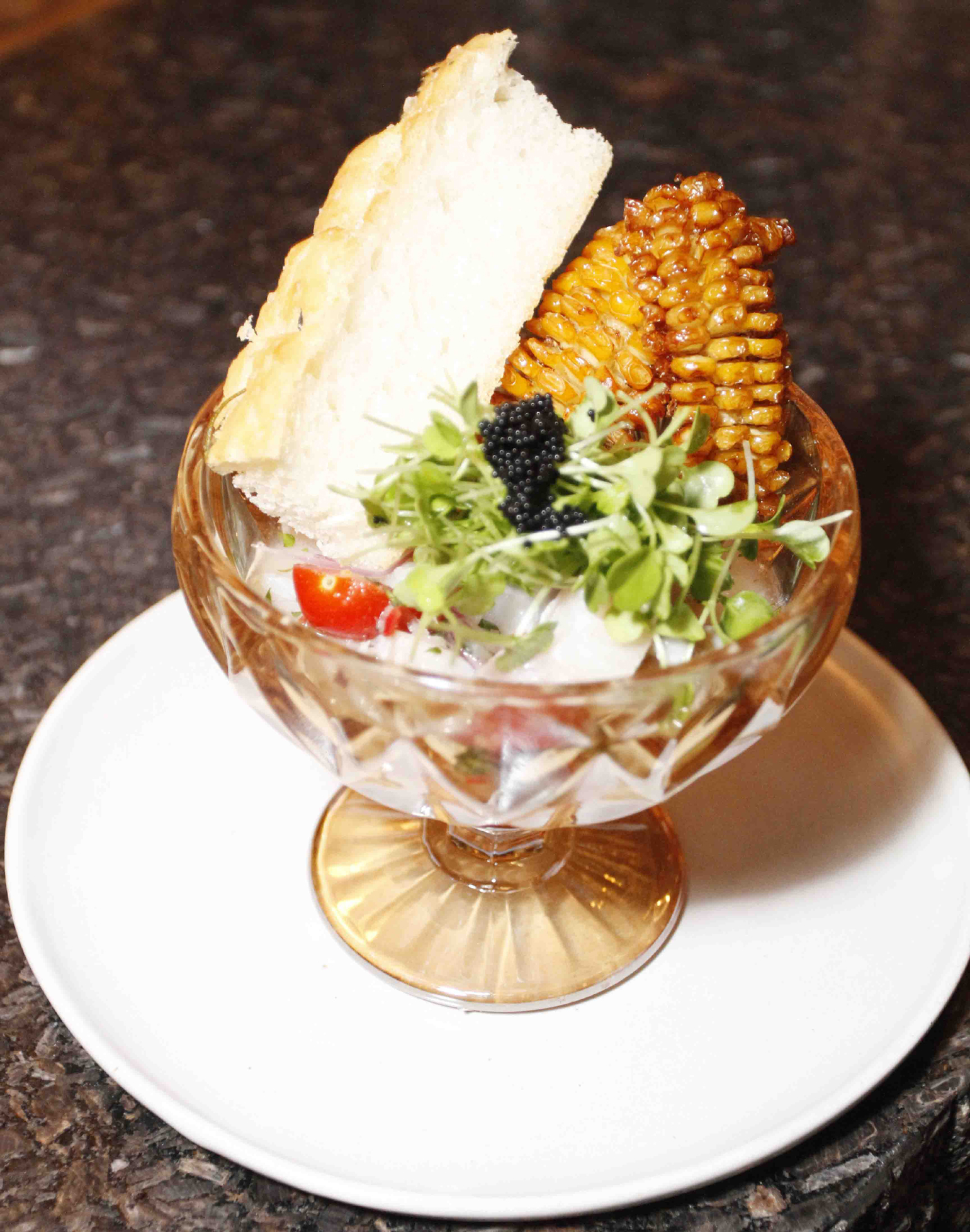 leite de tigre Residenza, ovas de peixe, tempero da casa, servido