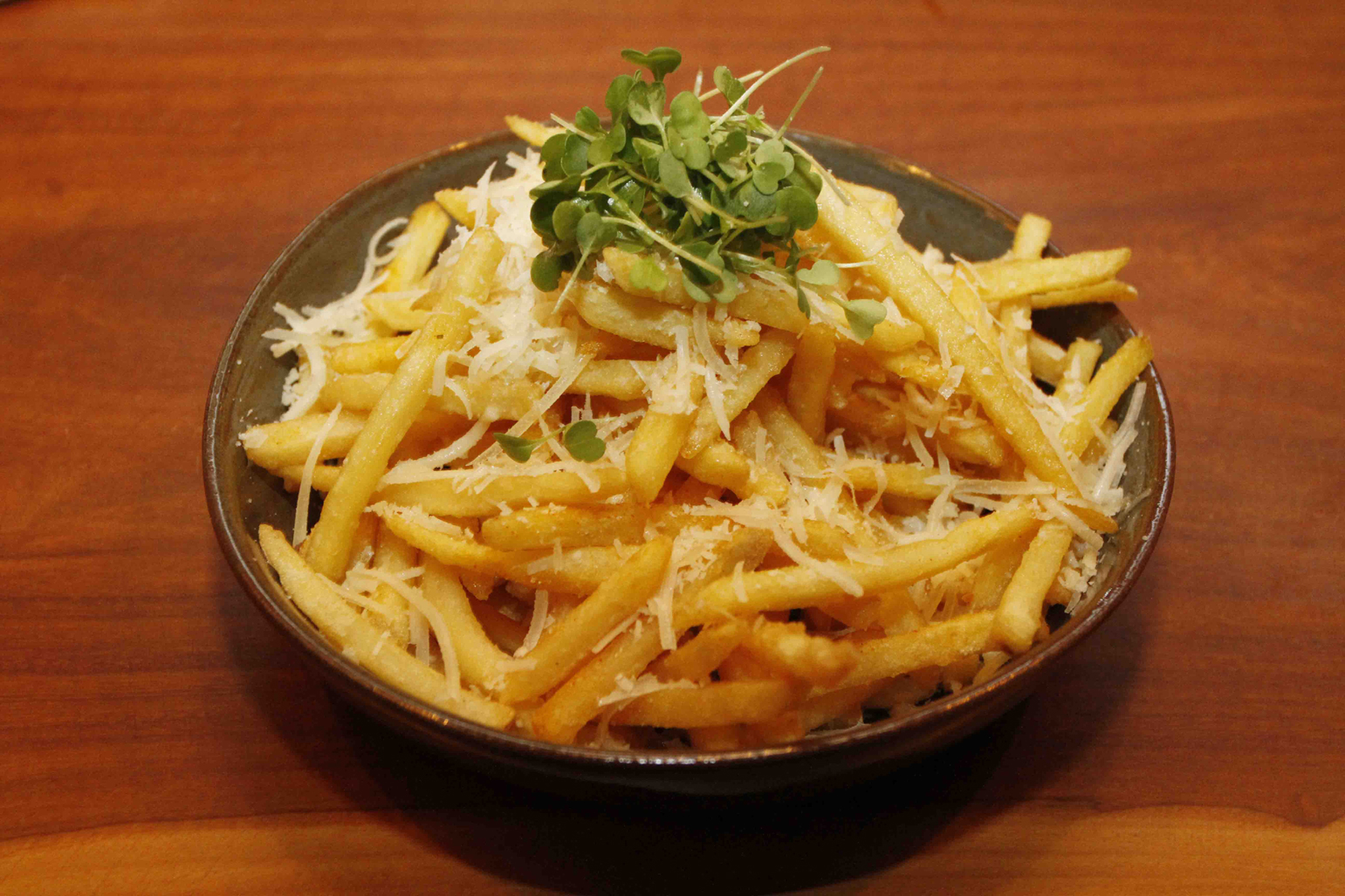 Até a batata frita, no azeite trufado,