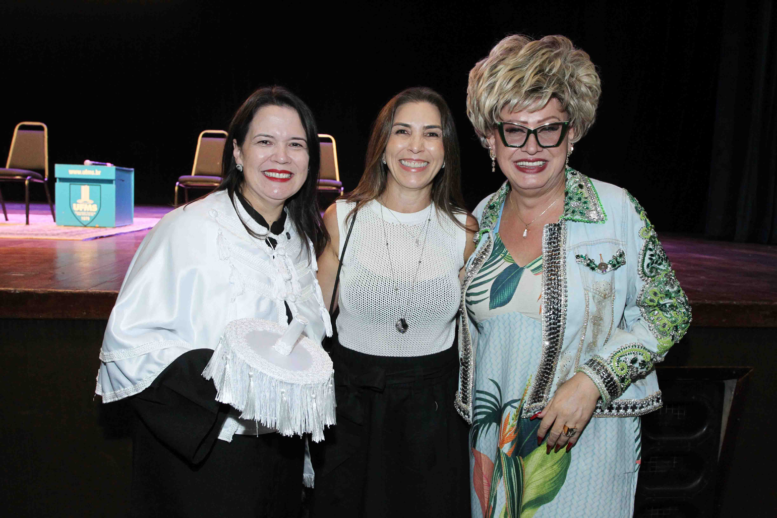 Ítavo, com a primeira-dama de MS, Mônica Riedel, e a atriz Nany