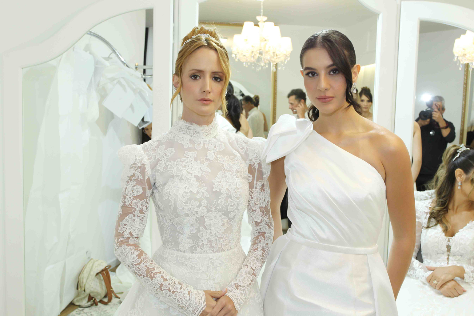 vestidos de noiva por ela desenvolvidos no próprio ateliê e os que